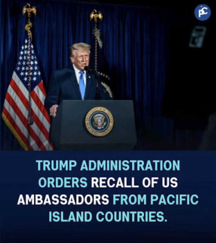 In late December 2025, the US State Department recalled three of its ambassadors from Pacific posts: the ambassador to Papua New Guinea, who is also accredited to Solomon Islands and Vanuatu, the ambassador to Fiji, who is also accredited to Kiribati, Tonga, Nauru, and Tuvalu; and the US ambassador to the Marshall Islands. Those are 8 independent nations of the Pacific. These diplomatic changes will lead to longer delays and increased bureaucracy for Pacific Island nations’ travel to and from the US, as well as routine diplomatic business.