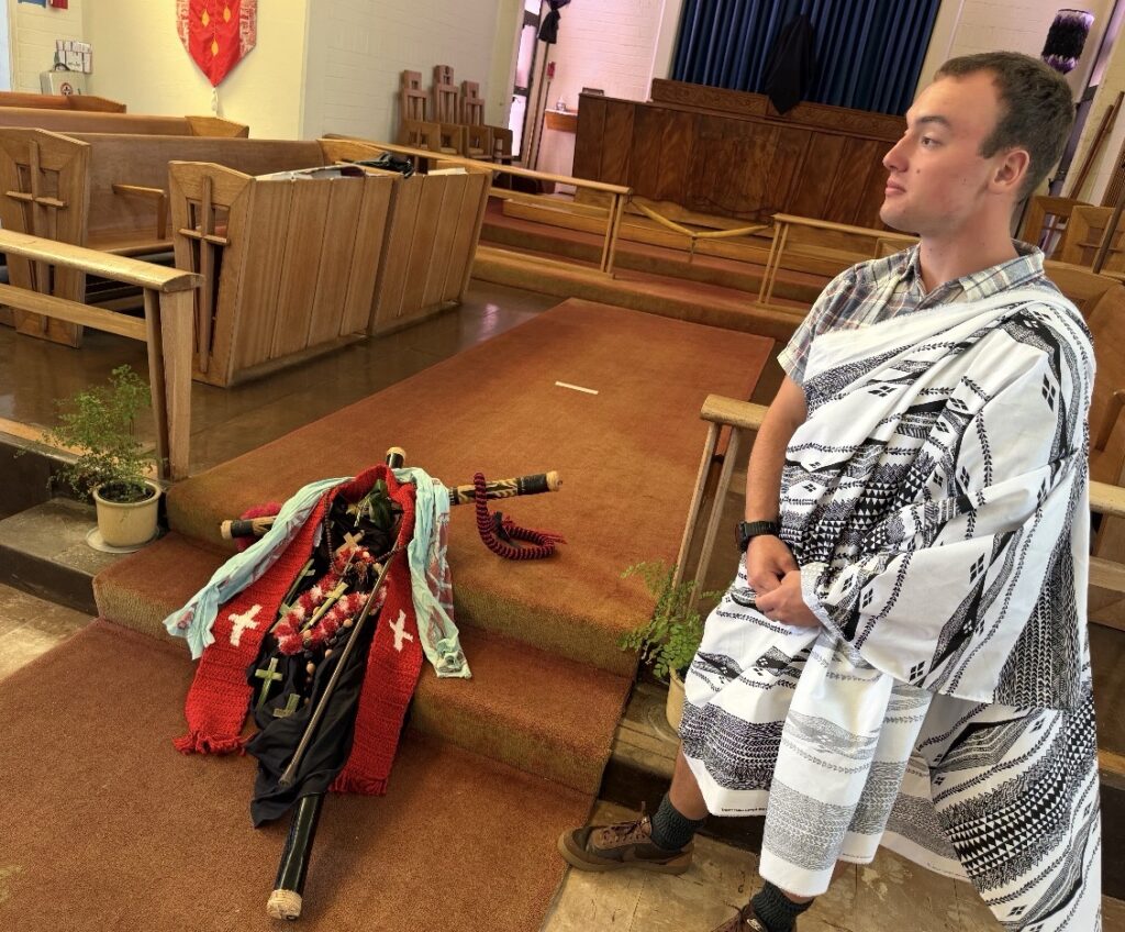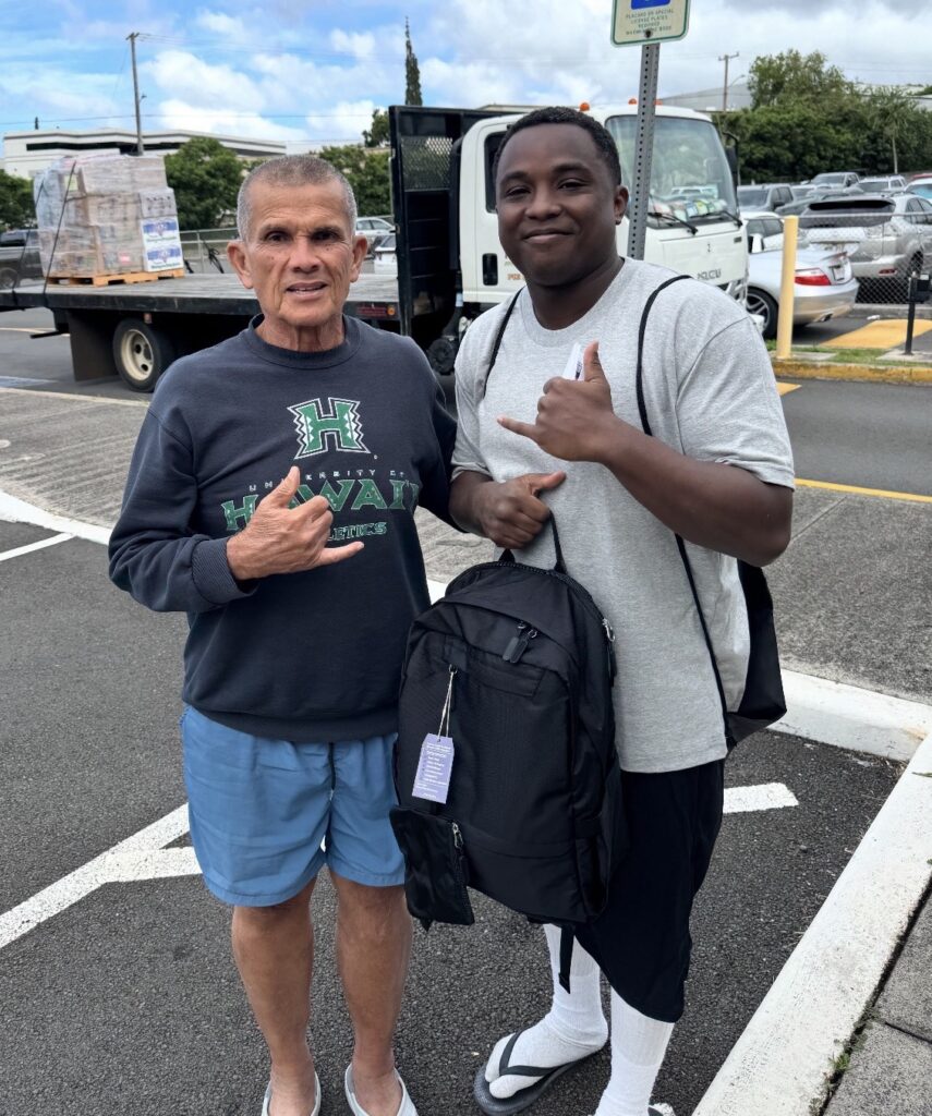 Arch Deacon Steve w/ Reentry Bac Pac for a child of God at Halawa Correctional Facility